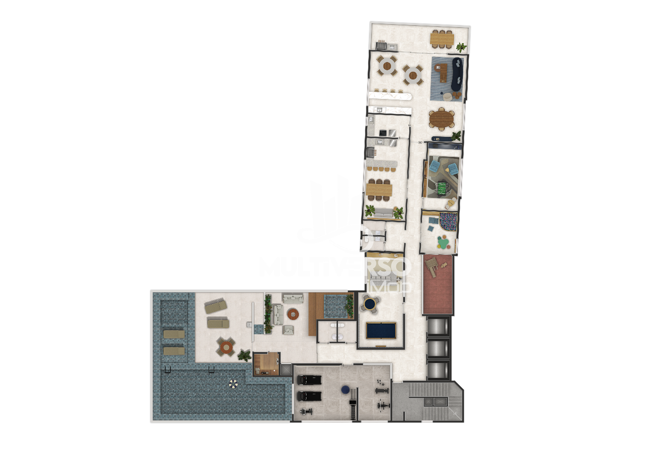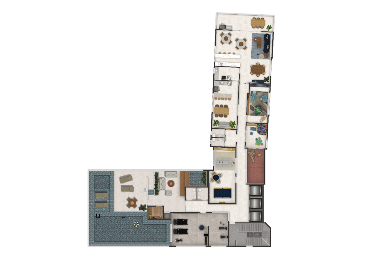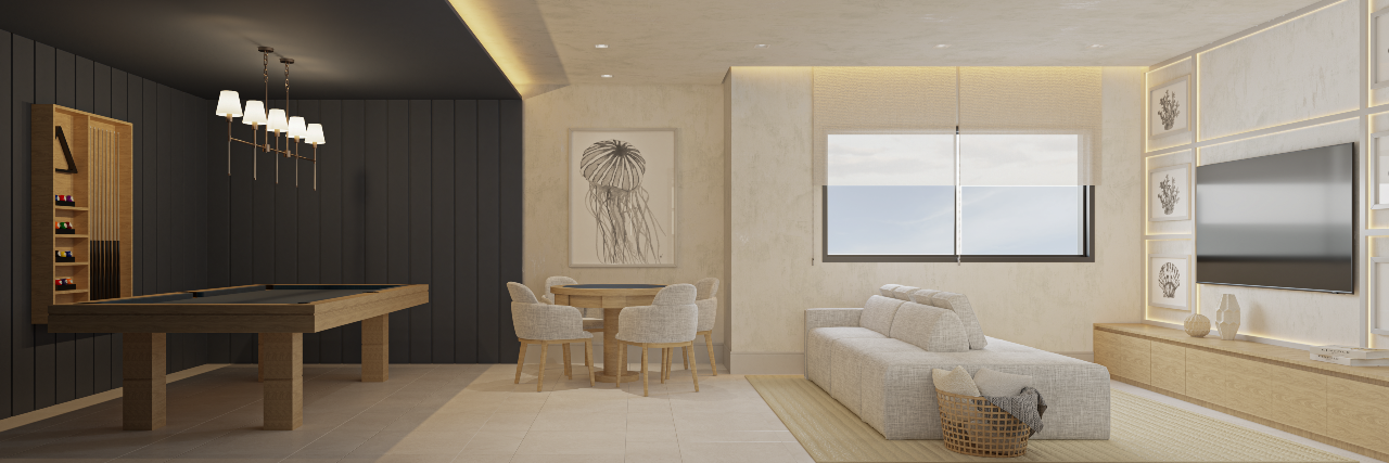 A área de lazer está distribuída entre rooftop, térreo e sobressolos, com 15 espaços de convivência e diversão, incluindo:
