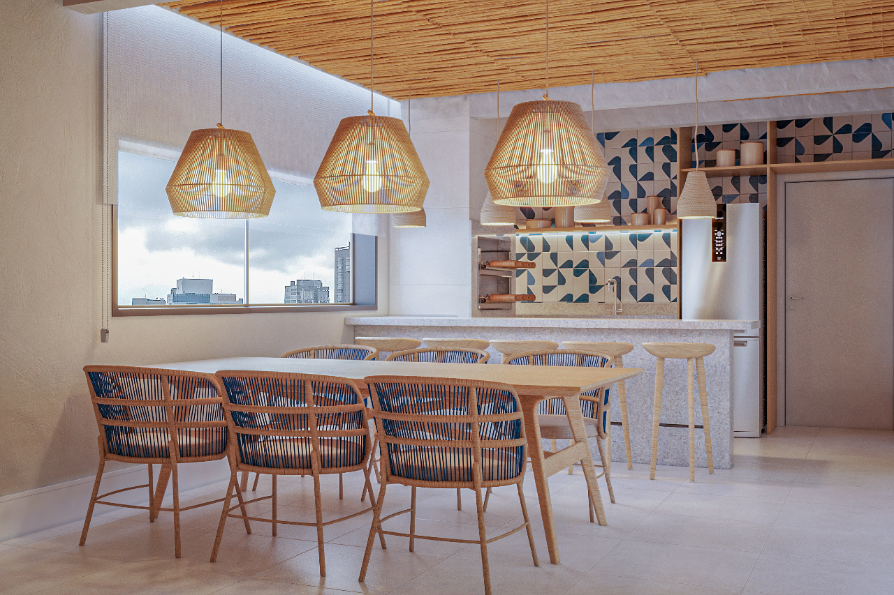 Todos os apartamentos são entregues com piso instalado exceto nos dormitórios, nicho no banheiro, ventilação natural, isolamento acústico, infraestrutura para ar-condicionado, aquecedor a gás e iluminação valorizada.